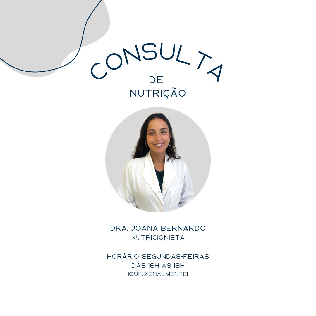 A Dra. Joana Bernardo integra a nossa equipa clínica assegurando a Consulta de Nutrição Clínica, Nutrição em Oncologia e Nutrição na Gravidez.
