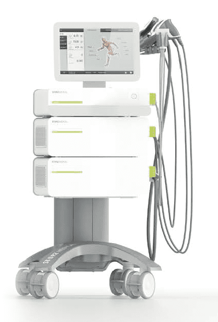 O Sistema de Ondas de Choque DUOLITH® SD1 Ultra representa um conceito claro e modular que atende às crescentes exigências de uma prática médica. Combina terapias de Ondas de Choque radiais, focais e terapias complementares de vibração num só sistema.
