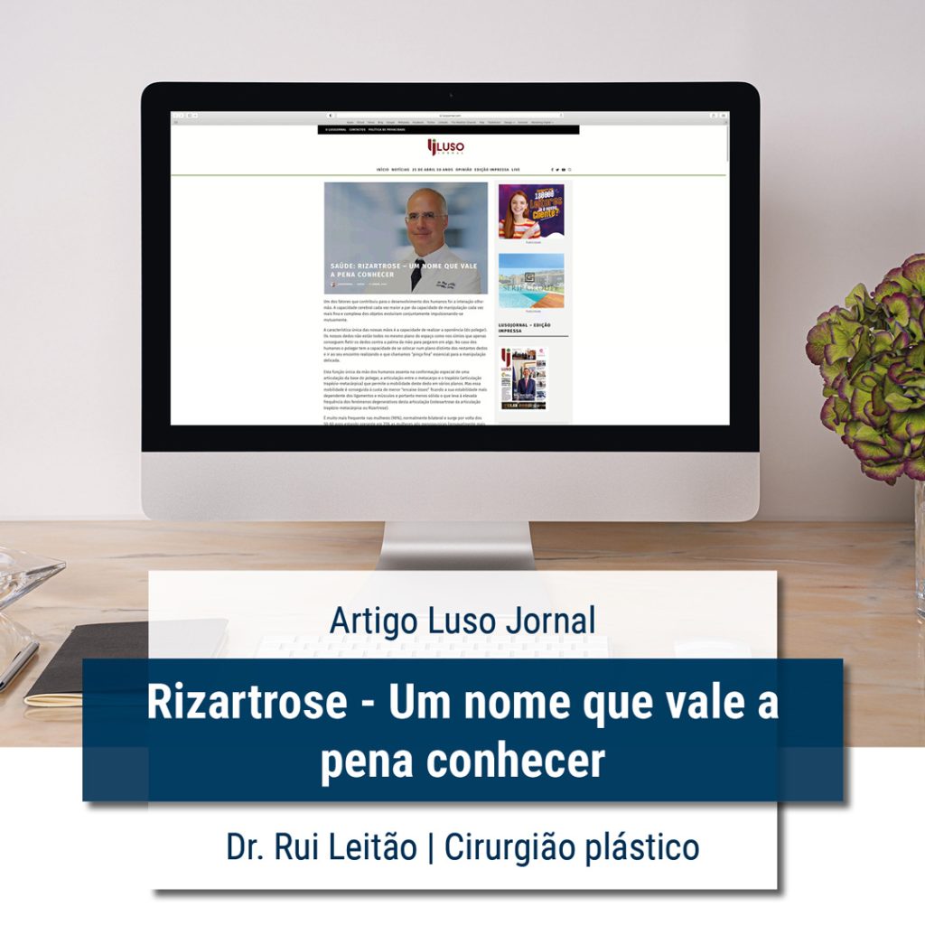 O cirurgião plástico na Fisiogaspar, Dr. Rui Leitão, escreveu um artigo para o Luso Jornal, onde explica o conceito de Rizartrose, um fenómeno degenerativo da articulação trapézio-metacárpica, que é mais frequente nas mulheres (cerca de 90%).