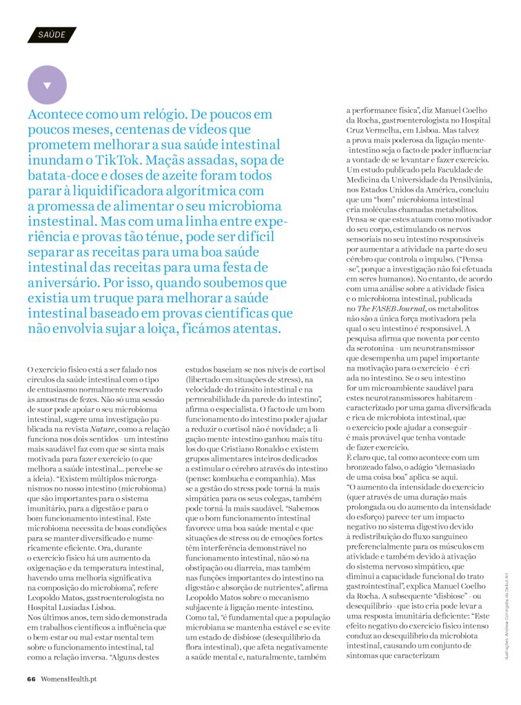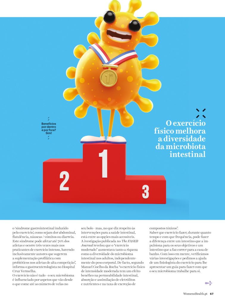 O fisiologia do exercício Hugo Pombo, participou num artigo para a revista Women’s Health, onde abordou o tema sobre a relação entre saúde intestinal e a motivação para fazer exercício físico.