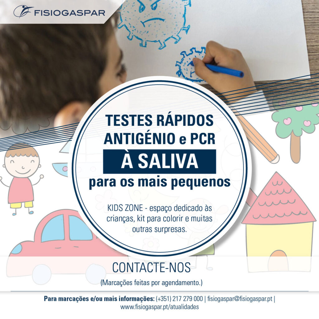 Na Fisiogaspar recomendamos o Rápido Antigénio e PCR a partir de amostra de saliva para crianças e estamos preparados para as receber. Criámos um espaço Kids Zone dedicado às crianças, com kits para colorir e muitas outras surpresas.